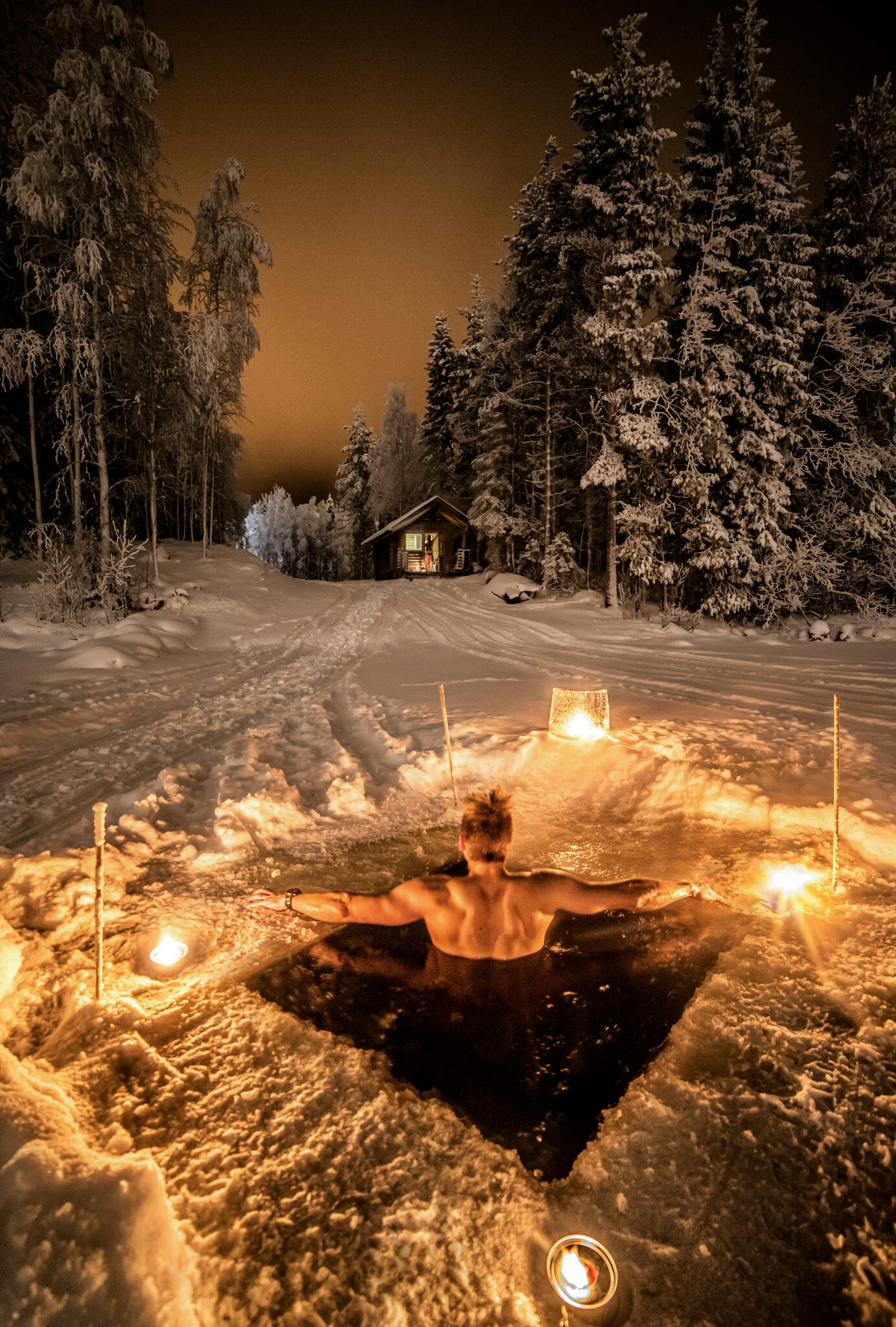 Enjoy the steam of a traditional Finnish wood-heated log sauna and take a couple of ice baths in a hole cut into the frozen lake right next to the sauna. Sauna is famous from social media :D
